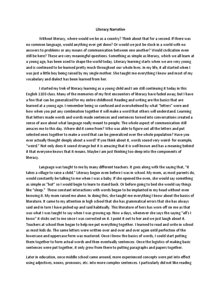 Literacy Narrative Essay Example For Students - words | Artscolumbia